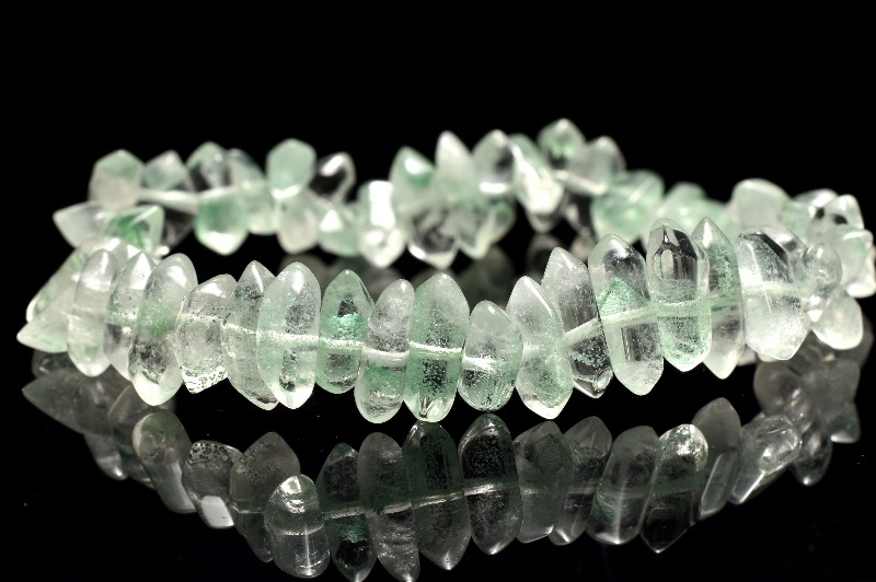 【1点物】マダガスカル産◇希少形状 エメラルドグリーンファントムクォーツ 3-5x8.5-11mm 両剣ポイント ブレスレット _MC1979