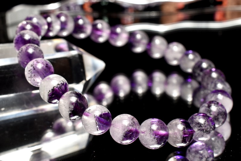 パワーストーンの定番アメジストに、細かなゲーサイトやレピドクロサイトが入っているアメジストスーパーセブンです。