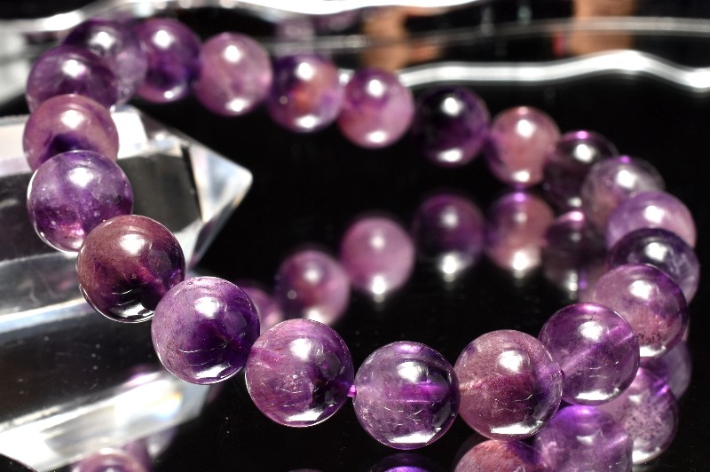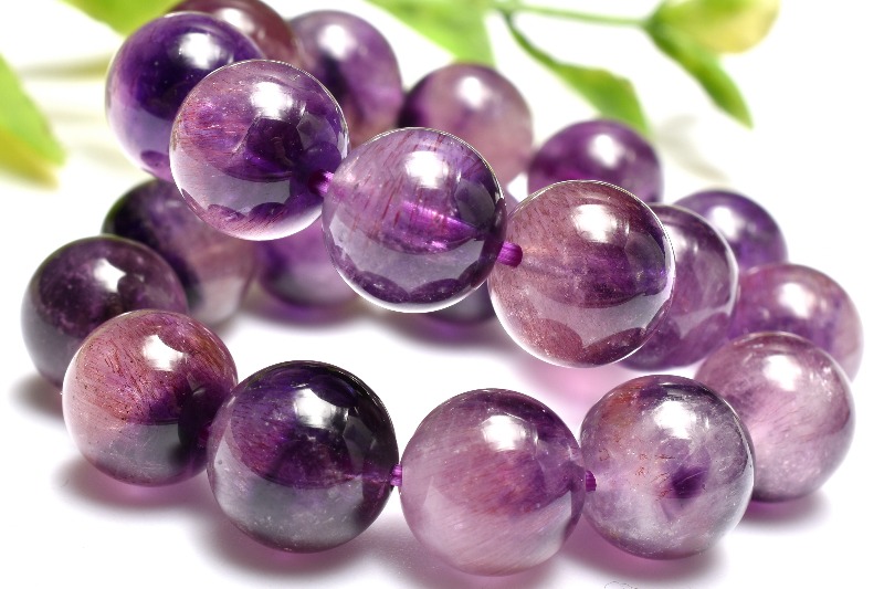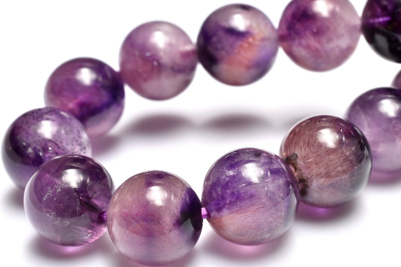 パワーストーンの定番アメジストに、細かなゲーサイトやレピドクロサイトが入っているアメジストスーパーセブンです。
