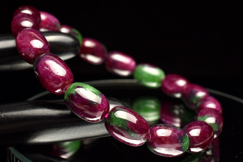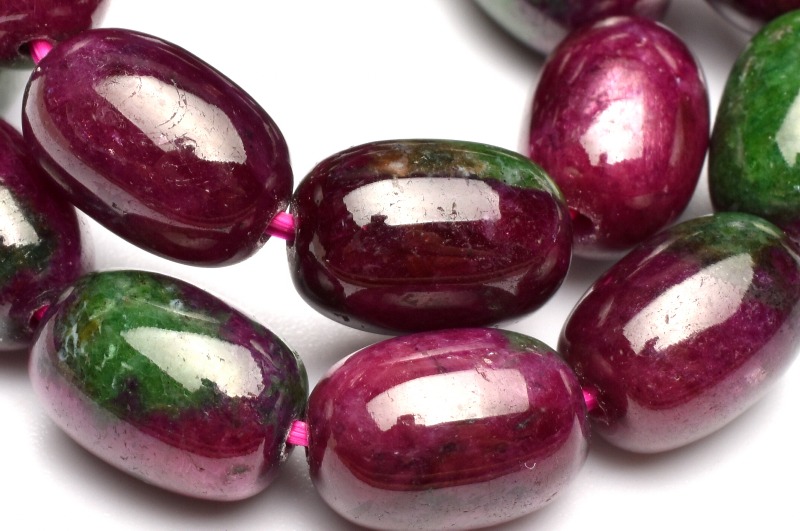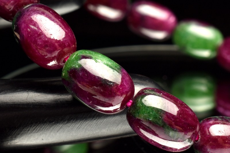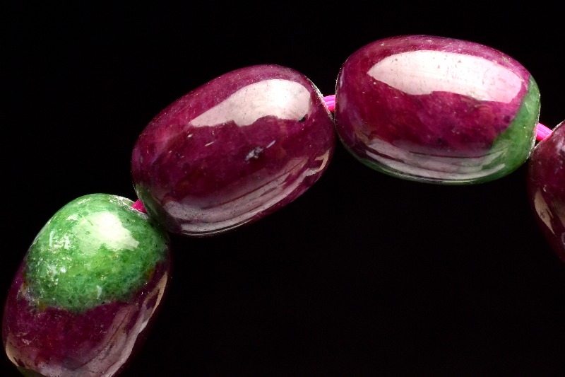 緑色の部分をゾイサイト、赤〜桃色の部分がルビーでそれらが混ざりあった天然石です。