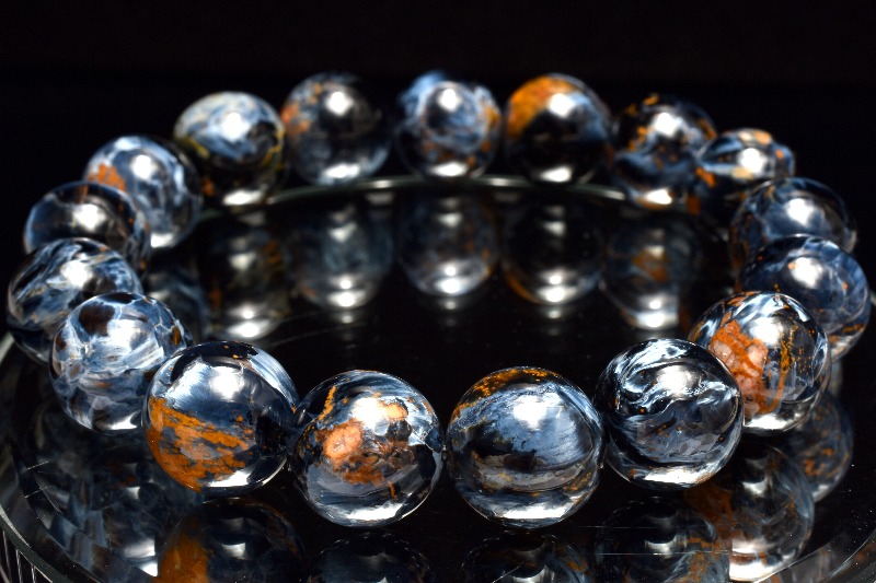 一般的にはタイガーアイ系の茶褐色が多いですが、ブルータイガーの青系もあり、茶と青の混じったものもあります。
