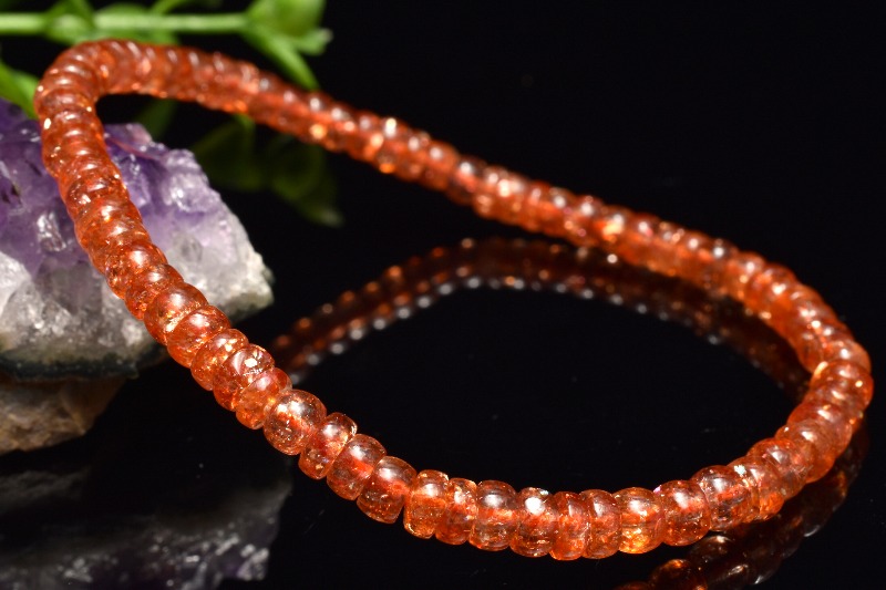 オレンジマイカサンストーンとは、半透明のサンストーンの中に、オレンジのインクルージョンが入っているパワーストーンで、隠れた才能を引き出し、新しい縁を引き寄せ、目標達成に効果のあるパワーストーンだと言われています。