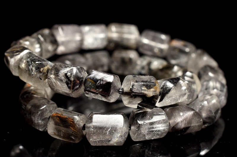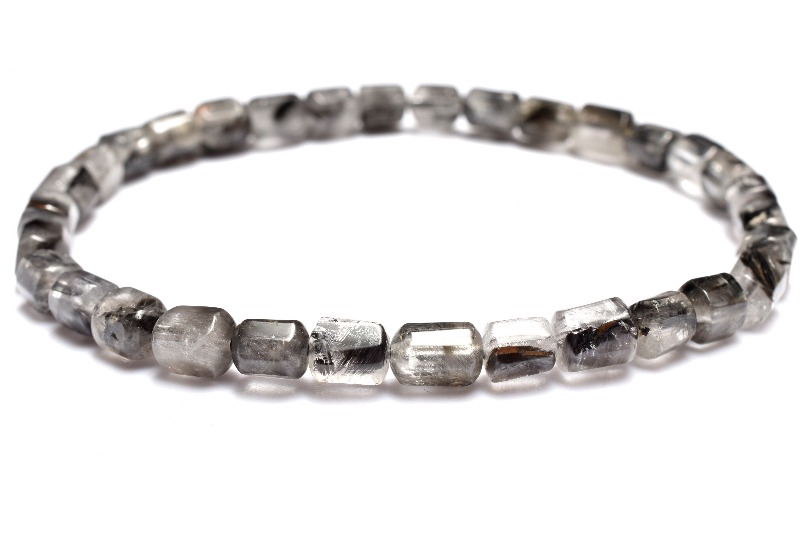 【1点物】AA+☆希少形状 プラチナタイチンルチルクォーツ 5-6x4-4.5mm チューブカット ブレスレット _MC2084