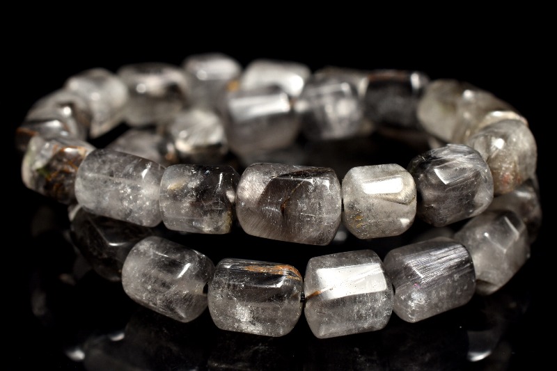 【1点物】AA+☆希少形状 プラチナタイチンルチルクォーツ 4.5-6.5x4-5mm チューブカット ブレスレット _MC2085