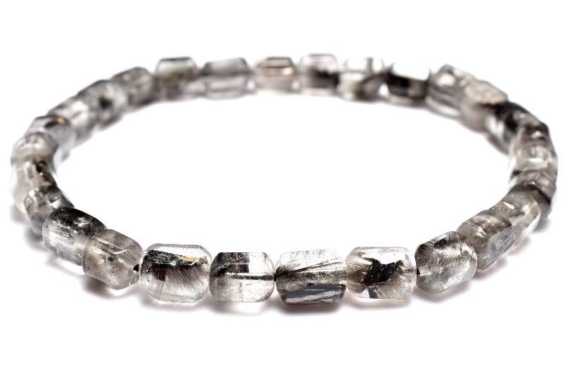 【1点物】AA+☆希少形状 プラチナタイチンルチルクォーツ 5.5-7.5x5-6mm チューブカット ブレスレット _MC2087