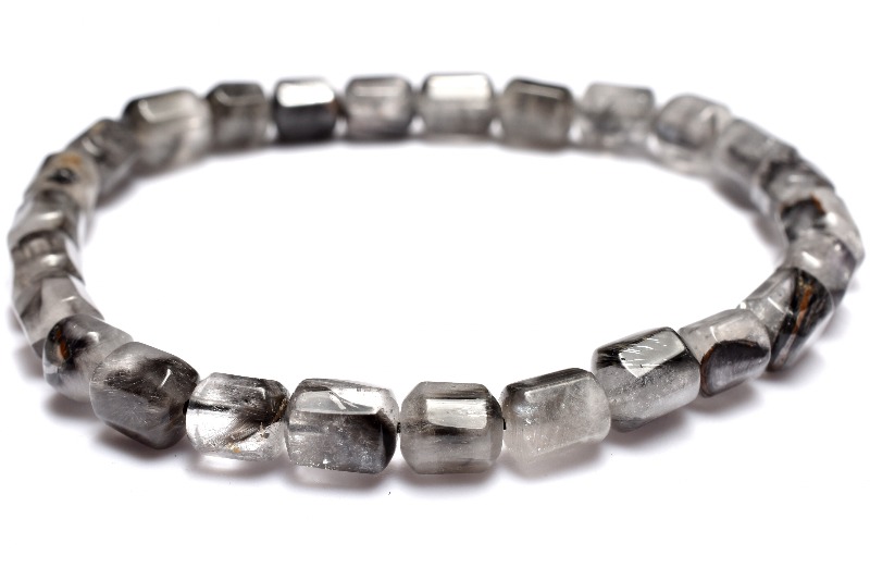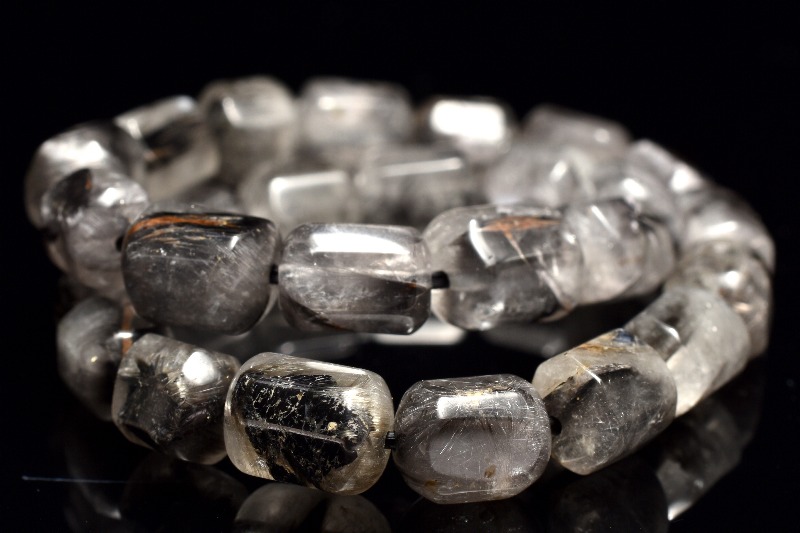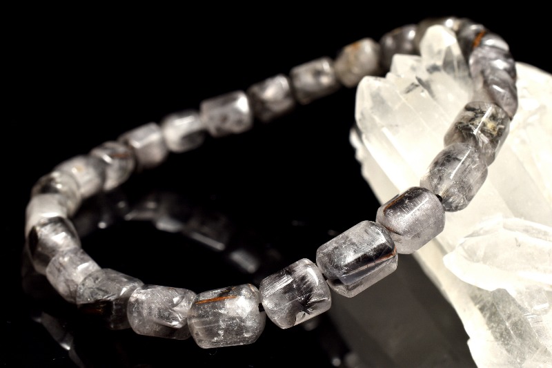 【1点物】AA+☆希少形状 プラチナタイチンルチルクォーツ 6-7.5x5-6mm チューブカット ブレスレット _MC2088