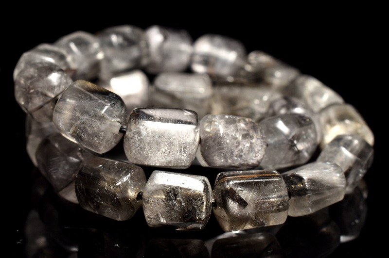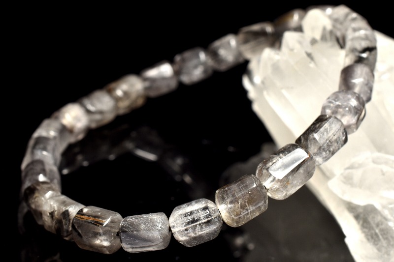 【1点物】AA+☆希少形状 プラチナタイチンルチルクォーツ 6.5-8x5-6mm チューブカット ブレスレット _MC2089