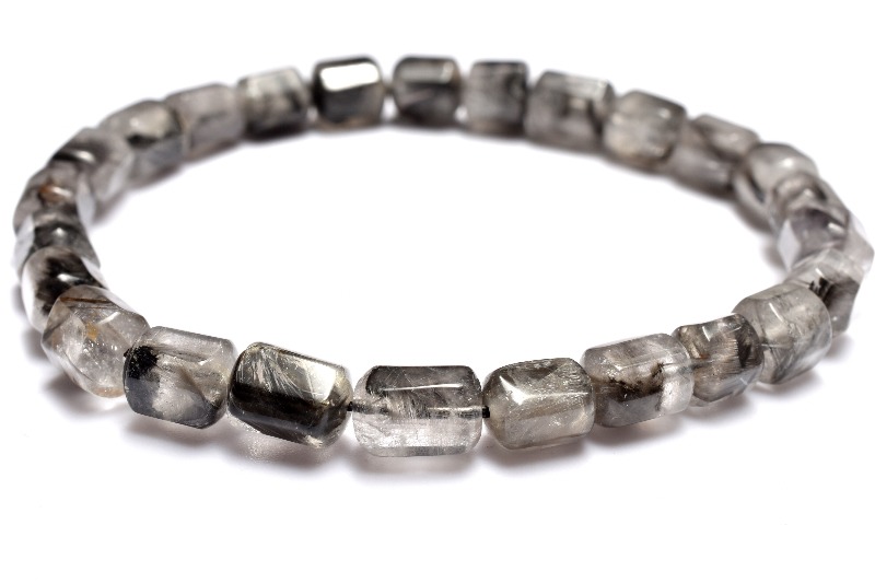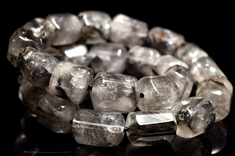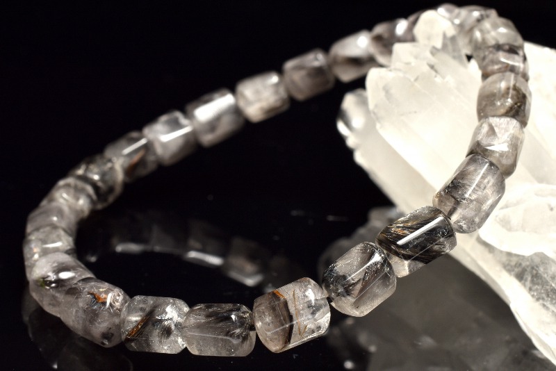 【1点物】AA+☆希少形状 プラチナタイチンルチルクォーツ 6-8x5-6.5mm チューブカット ブレスレット _MC2090