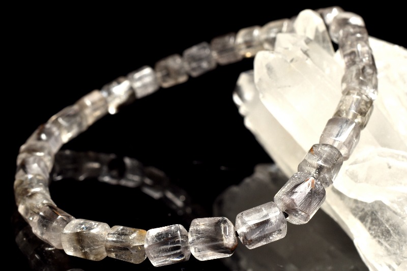 【1点物】AA+☆希少形状 プラチナタイチンルチルクォーツ 5-7x4.5-5mm チューブカット ブレスレット _MC2093
