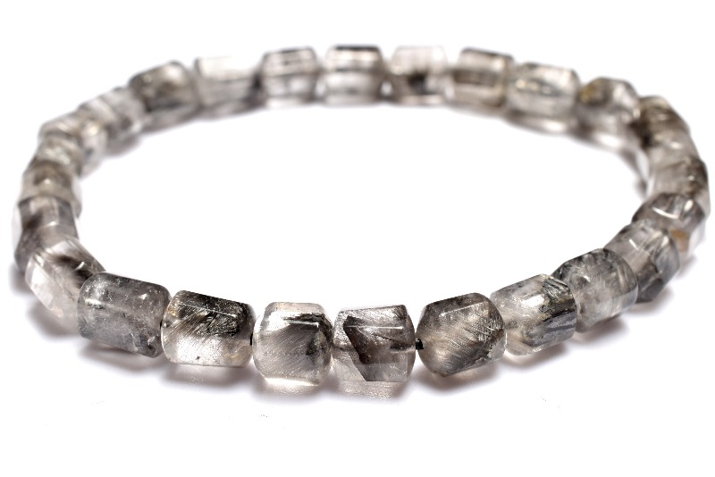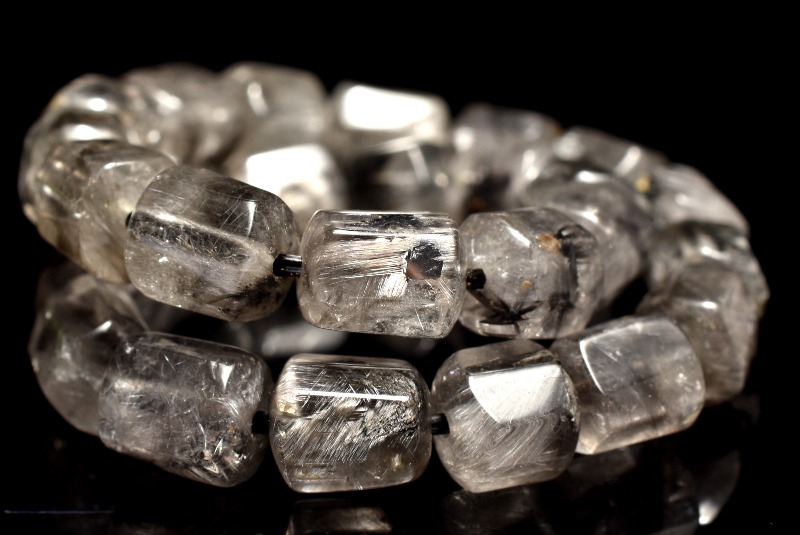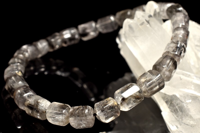 【1点物】AA+☆希少形状 プラチナタイチンルチルクォーツ 6-8.5x5.5-6.5mm チューブカット ブレスレット _MC2094
