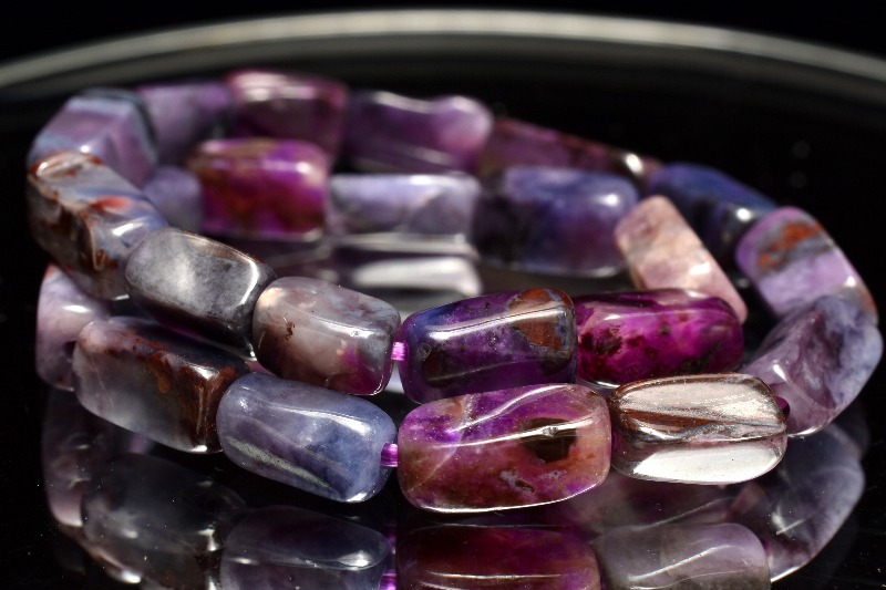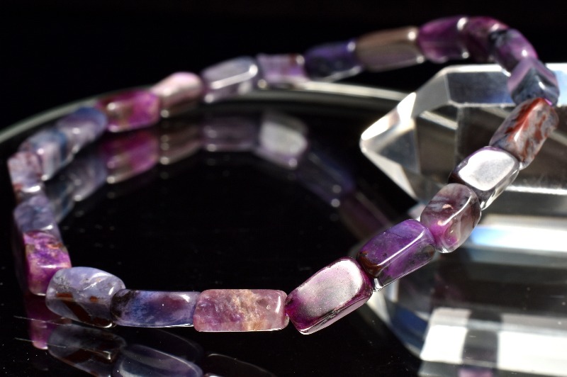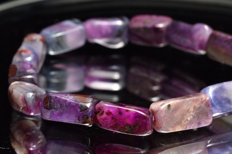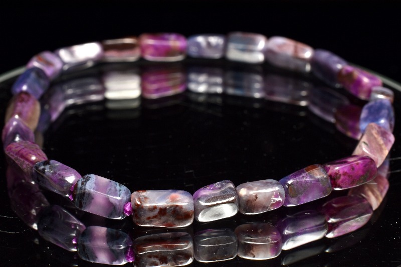 【1点物】AA+☆紫の濃淡が織りなす上級の美 スギライト(杉石) 6-10x3-4.5mm チューブカット ブレスレット _MC2105