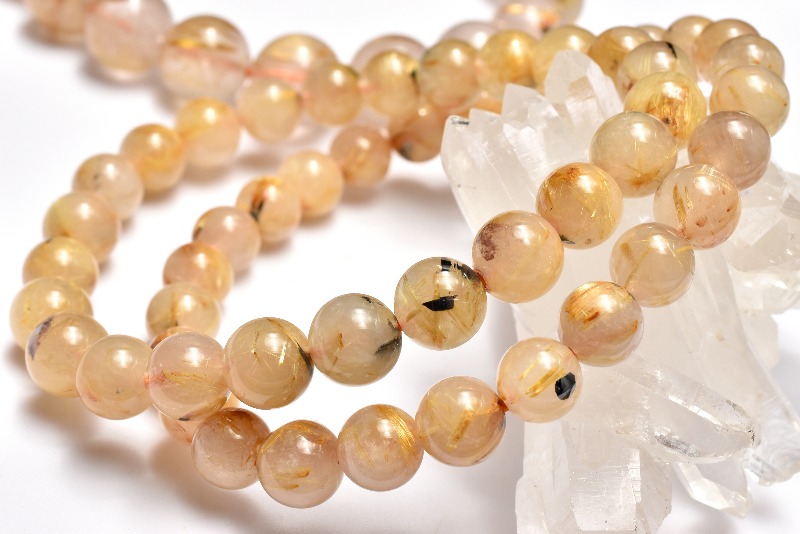 材質ヘマタイトインタイチンルチルクォーツ 8mm 産地:ブラジル