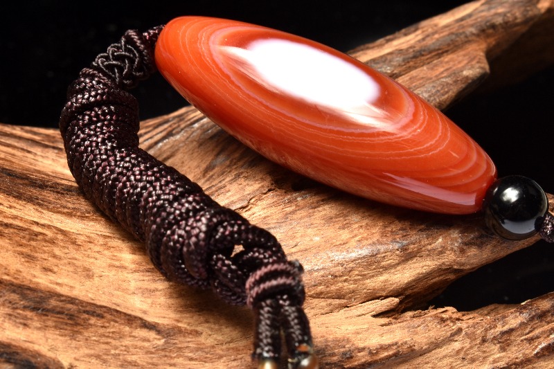 眼の模様が入った部分の原石を切り出し作られた天然の天珠です。