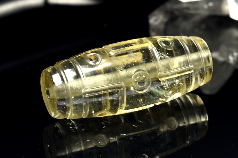 【1点物】AAA激レア☆透明レモンカラー◇ リビアングラス 29x12mm 九眼天珠(貫通穴) ビーズ _PC7807