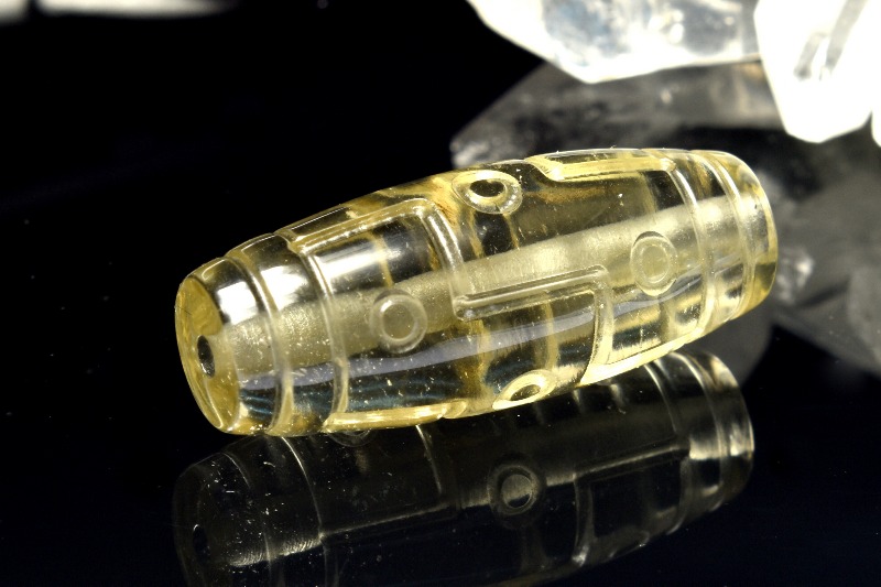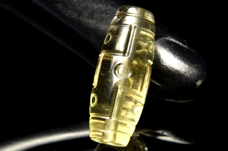 【1点物】AAA激レア☆透明レモンカラー◇ リビアングラス 29x12mm 九眼天珠(貫通穴) ビーズ _PC7809