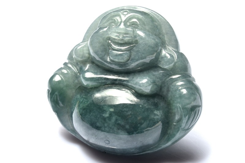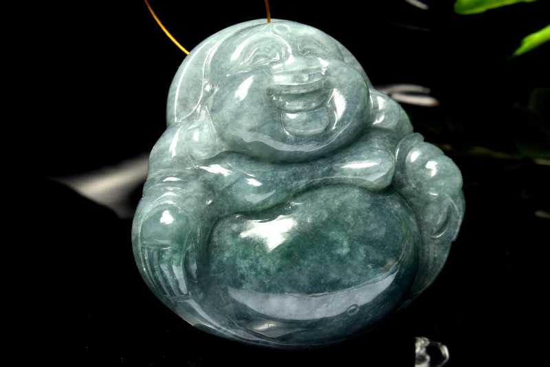 【1点物】アテマラ産◇希少マンサーノ翡翠 ブルージェダイト 青翡翠 39x41mm 布袋様彫刻(トップ穴) ルース _PC7875
