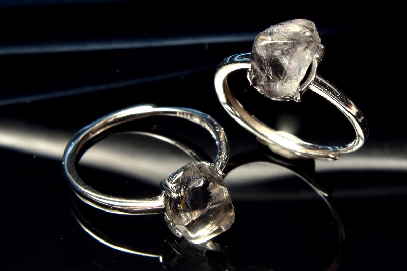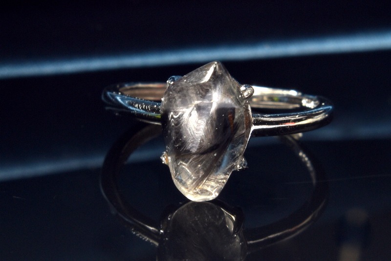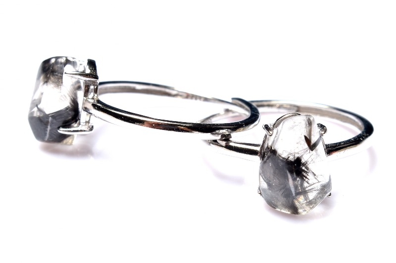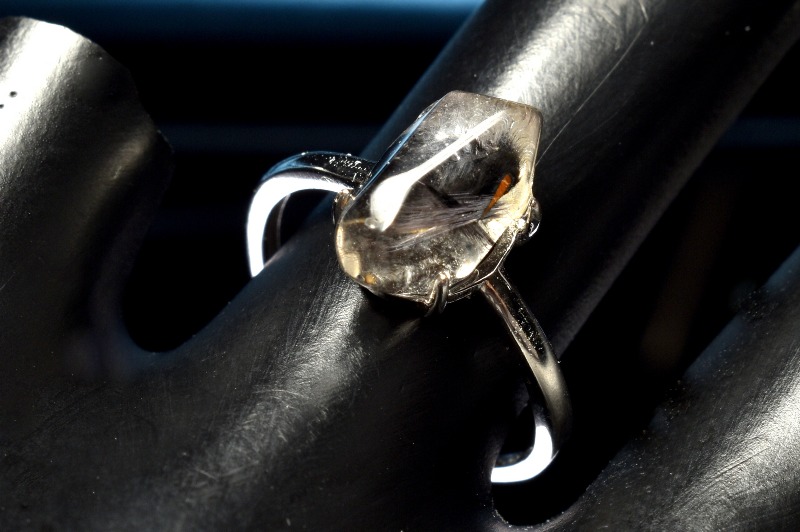Silver925◇希少 プラチナタイチンルチルクォーツ 9.5-11.5x6-7mm 原石 指輪リング(サイズ調整可) 1個売り _PRG2389