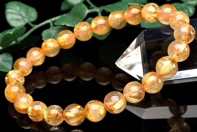 【1点物】黄金の輝き ゴールドタイチンルチルクォーツ 7.5mm ブレスレット _U8432