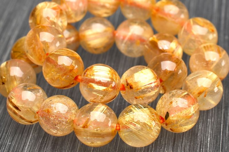 材質ゴールドタイチンルチルクォーツ 7.5mm 産地:ブラジル