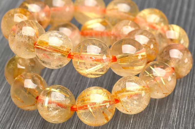 材質ゴールドタイチンルチルクォーツ 8mm 産地:ブラジル