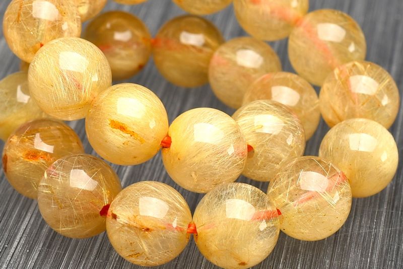 材質ゴールドタイチンルチルクォーツ 8mm 産地:ブラジル