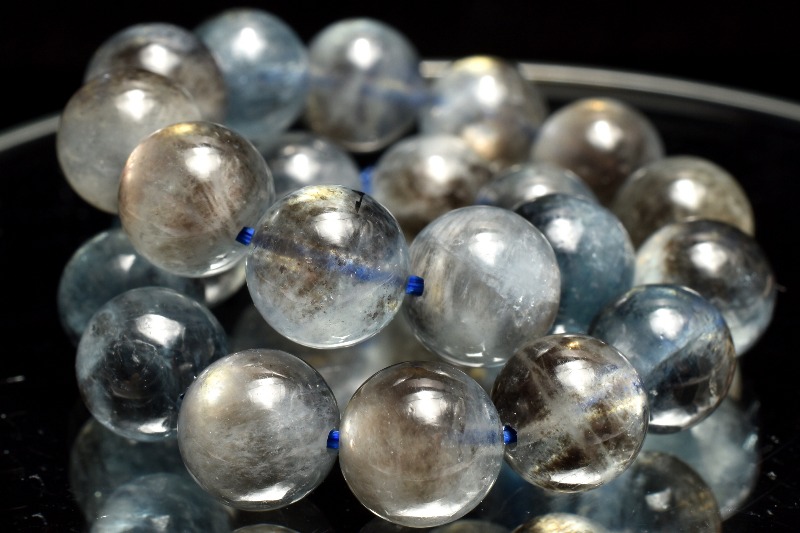 ブラックレインアクアマリンは、マイカやイルメナイトのインクルージョンが、まるで雨のように入った神秘的な石。