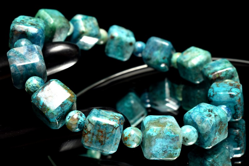 【1点物】シリカ共生◇高発色 クリソコラ 10x10(丸玉5.5)mm キューブ ブレスレット _MC2555