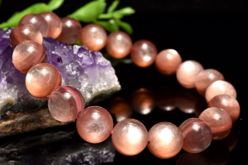 【1点物】希少カラー◇雲母の輝き ピンクマイカ レピドライトシリカ 9mm ブレスレット _MC2591