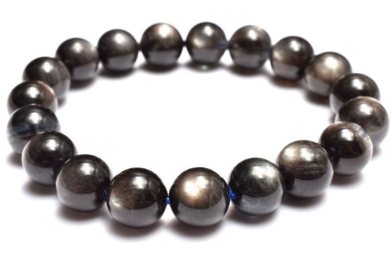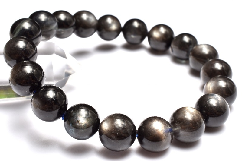【1点物】AA南アフリカ産☆金属シラー ブラックスターアクアマリン 10.5mm ブレスレット _MC2764