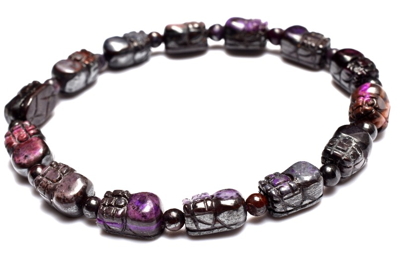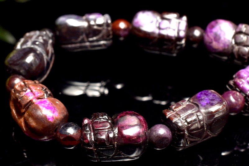 【1点物】高発色◇お守りに スギライト(杉石) 8.5-9.5x5.5-6.5(丸玉3.5)mm 貔貅彫刻 ブレスレット _MC2790
