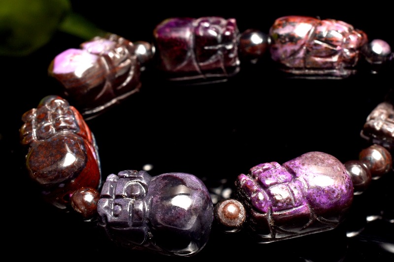 【1点物】高発色◇お守りに スギライト(杉石) 9.5-12x6.5-7.5(丸玉3.5)mm 貔貅彫刻 ブレスレット _MC2793