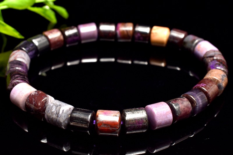 【1点物】高発色◇癒やしの石 スギライト(杉石) 6-7x7mm チューブ ブレスレット _MC2796