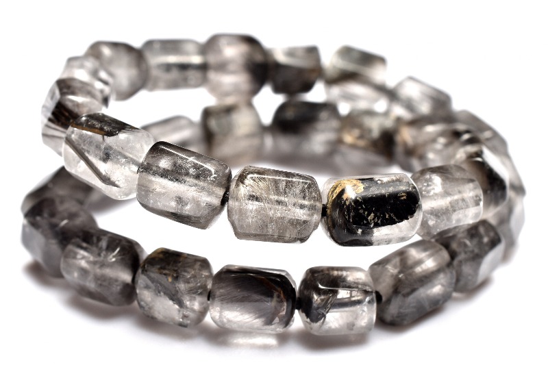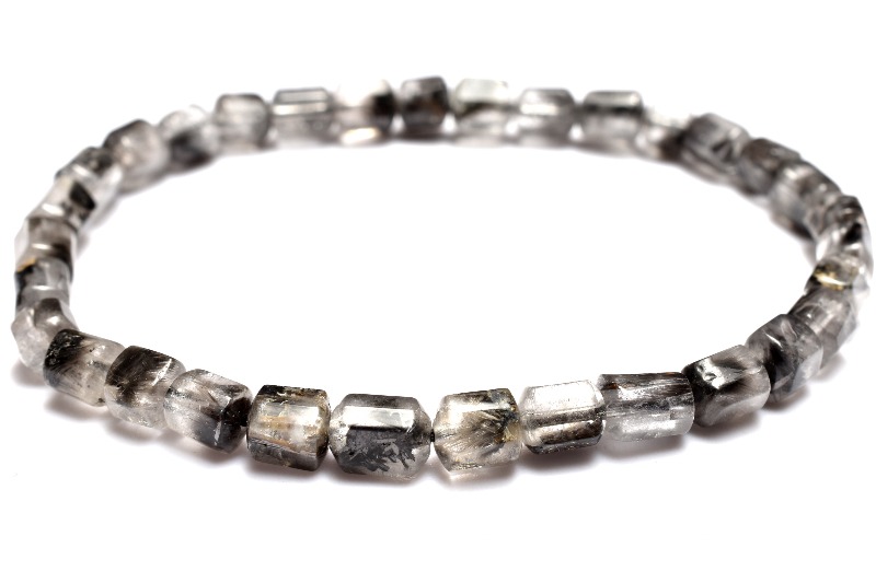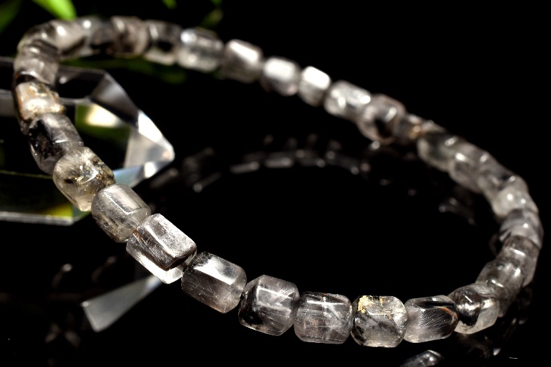【1点物】AA+☆希少形状 ブラックプラチナタイチンルチルクォーツ 4-6.5x4.5-5.5mm チューブカット ブレスレット _MC2811