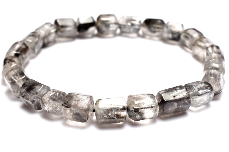 【1点物】AA+☆希少形状 ブラックプラチナタイチンルチルクォーツ 6-9x6-7.5mm チューブカット ブレスレット _MC2819