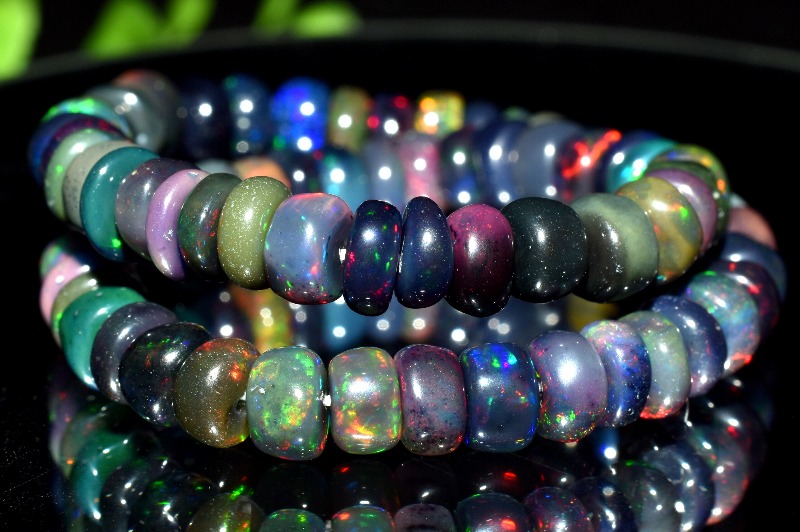 【1点物】AA☆エチオピア産 ブラックプレシャスオパール 1.5-3x5mm ボタン ブレスレット _MC2846