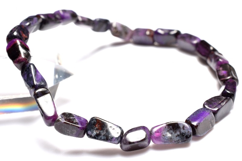 【1点物】AAA☆高発色パープル スギライト(杉石) 7-9x4.5-5.5mm ミニタンブル ブレスレット _MC2872