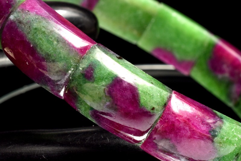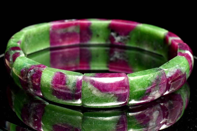 緑色の部分をゾイサイト、赤〜桃色の部分がルビーでそれらが混ざりあった天然石です。