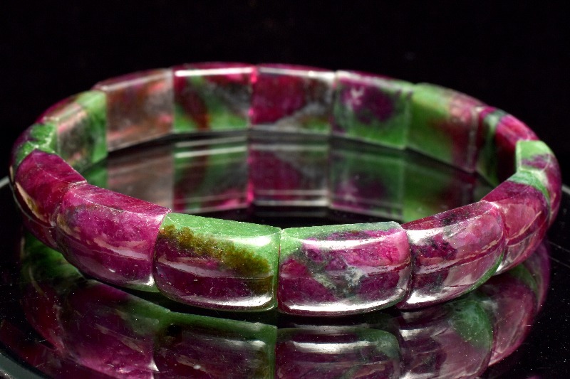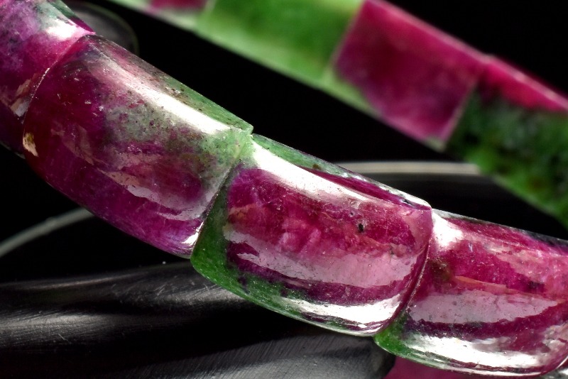 緑色の部分をゾイサイト、赤〜桃色の部分がルビーでそれらが混ざりあった天然石です。