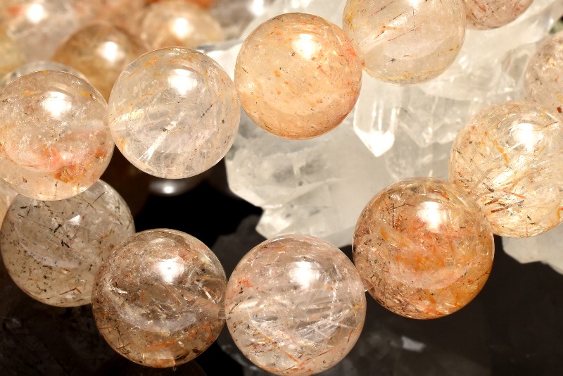 ルチルクォーツにもよく似た神秘的な雰囲気を持つため、トルマリンクォーツが、「ルチルクォーツ」の名称で販売されている場合がありますが、全く別の鉱物です。トルマリンクォーツに「トルマリン」が内包されているように、ルチルクォーツには「ルチル」が内包されています。