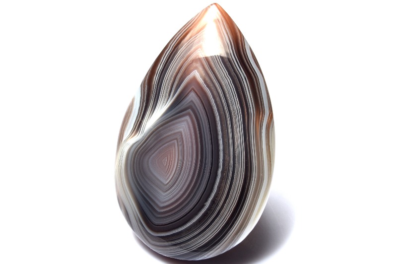 ほんのりとした透明感のある地石に美しい縞模様(しまもよう)が見られるのが、ボツワナアゲートの特徴です。同じ縞瑪瑙の仲間には、ブルーレースアゲート、サードオニキス、天眼石などがあります。