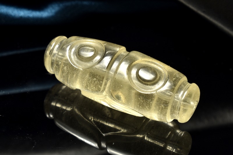 【1点物】AA☆繊細彫刻 リビアングラス 30x11mm 三眼天珠 ビーズ _PC8154