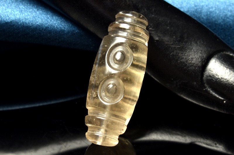 【1点物】AA☆繊細彫刻 リビアングラス 30x12mm 五眼天珠 ビーズ _PC8157
