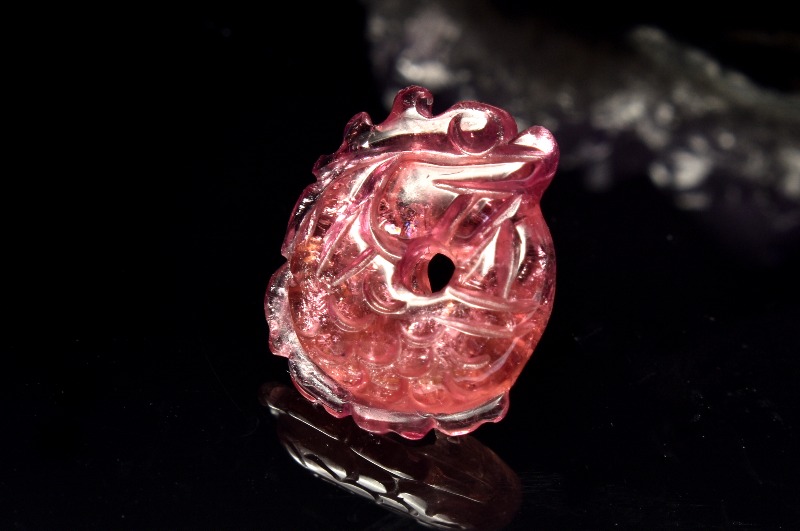 【1点物】AAAA☆繊細彫刻 ピンクトルマリン 14x11mm 龍彫刻 ルース _PC8186