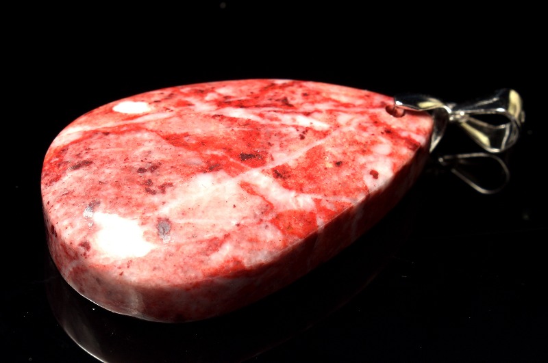【1点物】Silver925◇高発色 シナバー辰砂 33x21mm ドロップ ペンダントトップ _PC8270