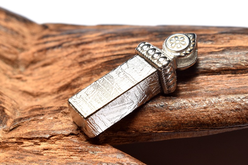 Silver925 アルタイ隕石(メテオライト) 14x5mm シルバーコーティング ペンダントトップ 1個売り _PRG2402-1