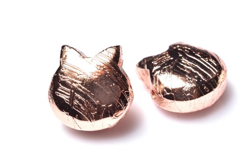 アルタイ隕石(メテオライト) 10x10mm 猫(貫通穴) ピンクゴールドコーティング ビーズ 1個売り _PRG2403-3