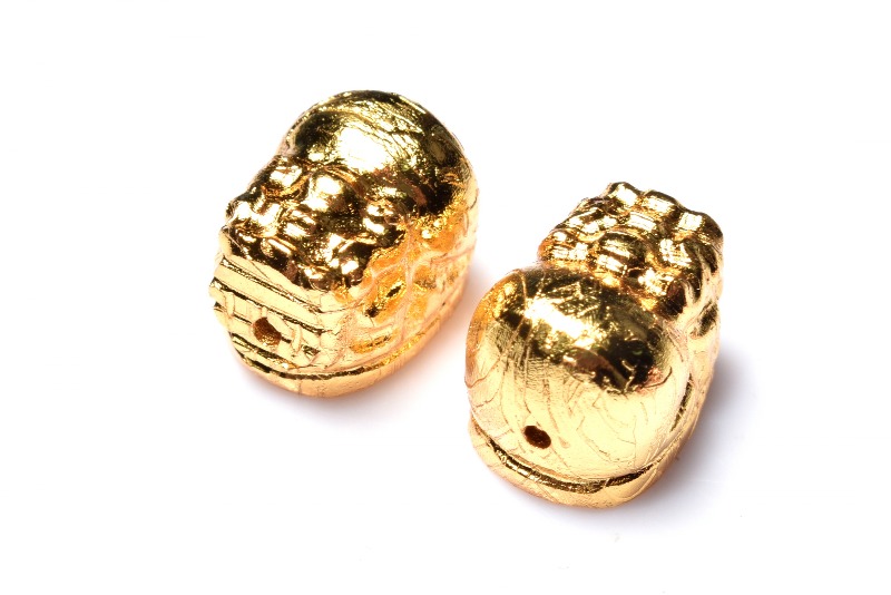 アルタイ隕石(メテオライト) 11x8mm 貔貅(貫通穴) ゴールドコーティング ビーズ 1個売り _PRG2406-2