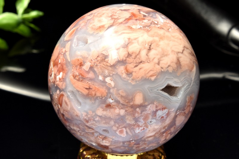 【1点物】ベトナム産◇ジオード チェリーブロッサムアゲート 50mm 丸玉(台座付き) スフィア _CG6962【宅急便のみ】