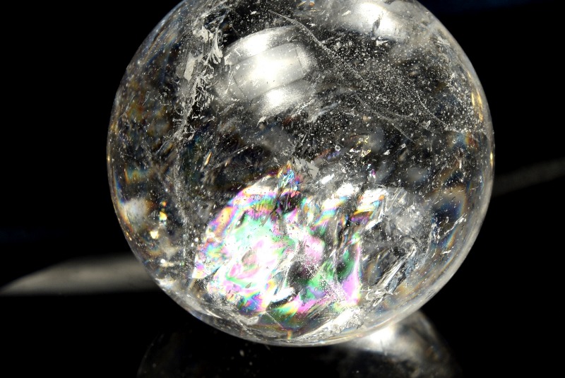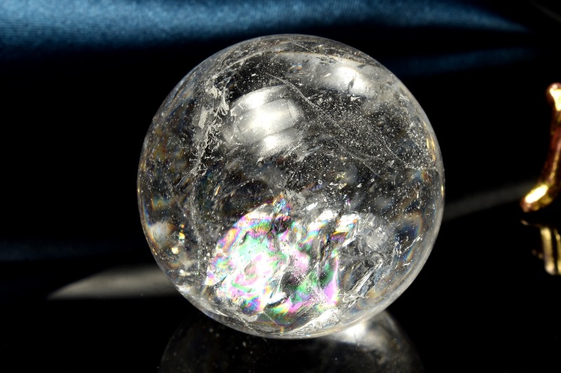 【1点物】虹入り!コロンビア産 レムリアンシードクリスタル 32mm 丸玉(台座付き) スフィア _CG6979【宅急便のみ】