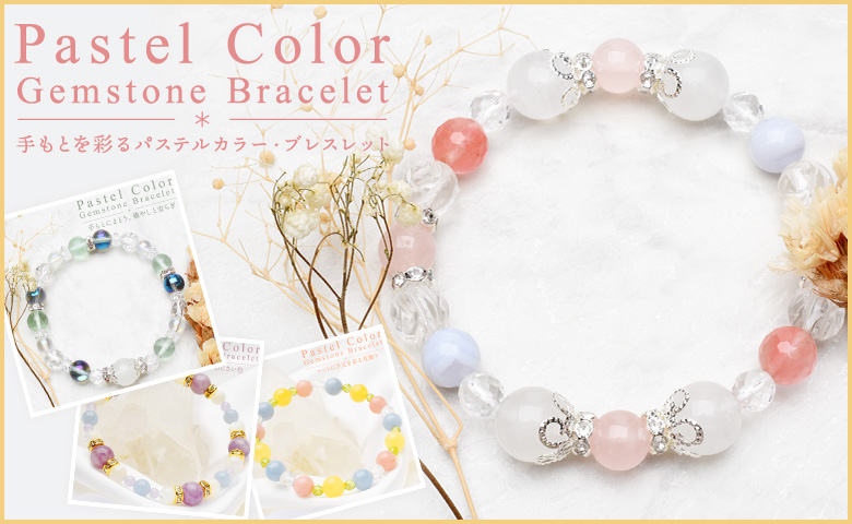 今回、当店ではやわらかなパステルカラーを基調にした天然石ブレスレットを9点、新たに発売いたしました。